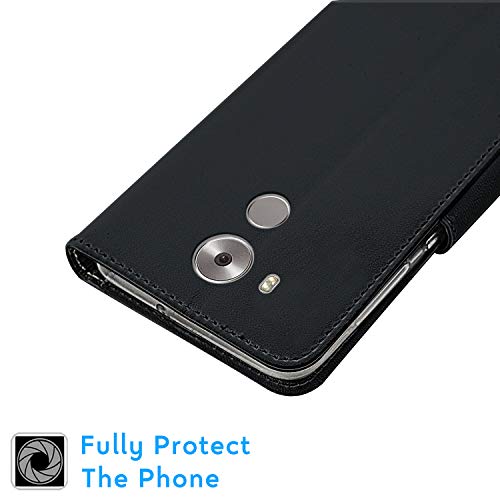 N NEWTOP Cover Compatibile per Huawei Mate 8, HQ Lateral Custodia Libro Flip Chiusura Magnetica Portafoglio Simil Pelle Stand (Nera)