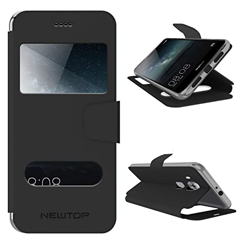 N NEWTOP Cover Compatibile per Huawei Mate S, HQ Windows Notifiche Display Risposta Finestra Custodia Libro Flip Magnetica Simil Pelle Stand Protettiva (Nero)