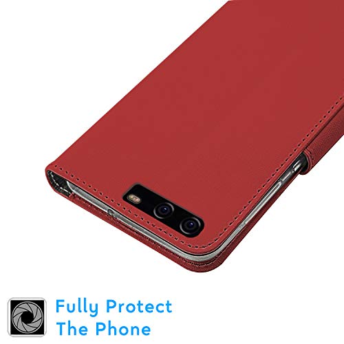 N NEWTOP Cover Compatibile per Huawei P10 Plus, HQ Lateral Custodia Case Flip Magnetica Portafoglio Simil Pelle Stand (per P10 Plus, Rossa)