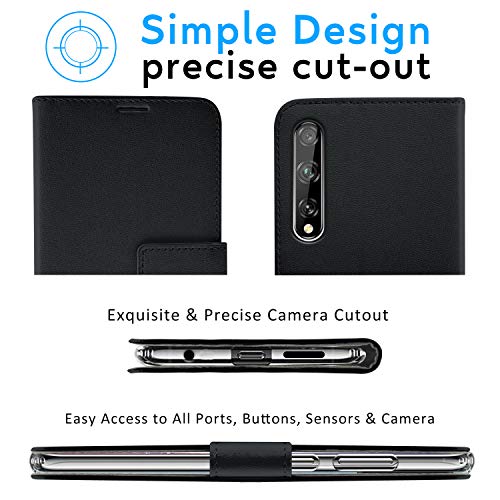 N NEWTOP Cover Compatibile per Huawei P Smart S - Y8P, HQ Lateral Custodia Libro Flip Chiusura Magnetica Portafoglio Simil Pelle Stand (Nero)