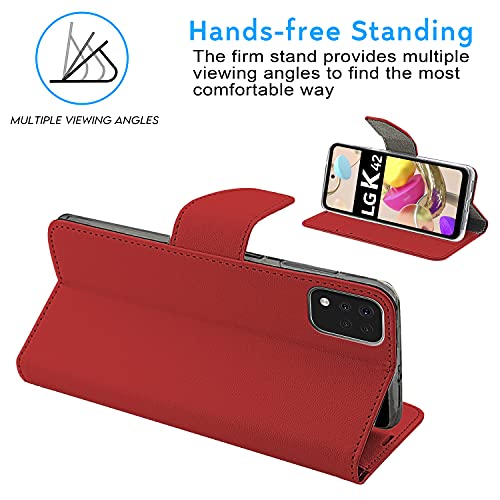 N NEWTOP Cover Compatibile con LG K42, HQ Lateral Custodia Libro Flip Chiusura Magnetica Portafoglio Simil Pelle Stand (Rosso)