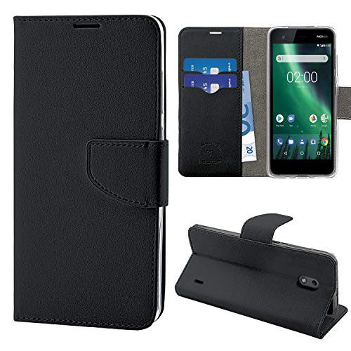 N NEWTOP Cover Compatibile per Nokia 2, HQ Lateral Custodia Libro Flip Chiusura Magnetica Portafoglio Simil Pelle Stand (Nero)