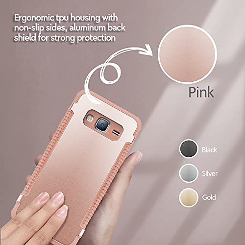 N NEWTOP Cover Compatibile per Samsung Galaxy J3 2016, Custodia MOTOMO Grip TPU Alluminio Resistente Flessibile Case Posteriore Protettiva (Rosa)
