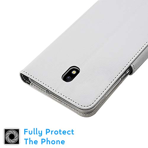 NewTop Cover Compatibile per Samsung Galaxy J7 2017, HQ Lateral Custodia Libro Flip Magnetica Portafoglio Simil Pelle Stand (Bianco)