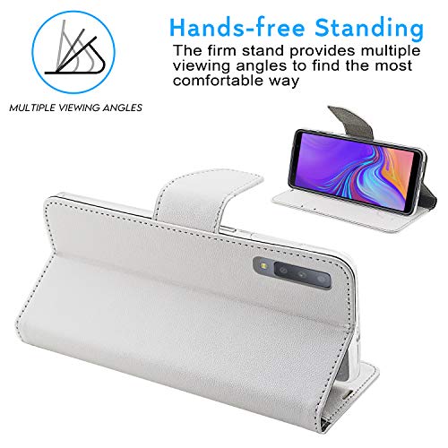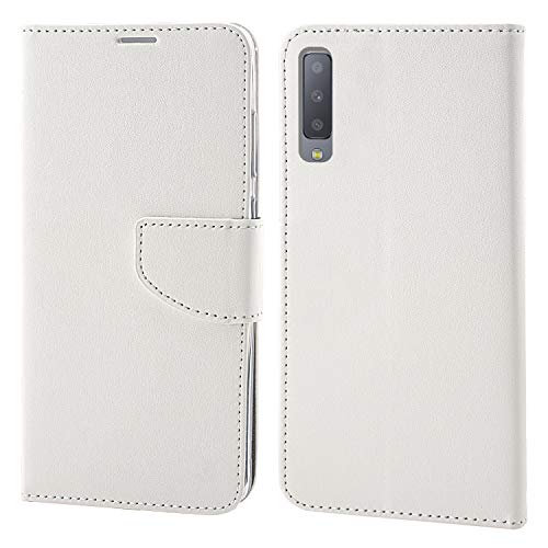 NewTop Cover Compatibile per Samsung Galaxy A7 2018, HQ Lateral Custodia Libro Flip Magnetica Portafoglio Simil Pelle Stand (Bianco)