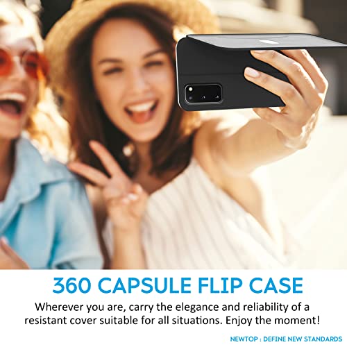 N NEWTOP Cover Compatibile per Samsung Galaxy S20, Chiusura Magnetica 360 Capsule Flip Custodia Libro per Carta di Credito Simil Pelle TPU Interno Funzione Stand Supporto (Nero)