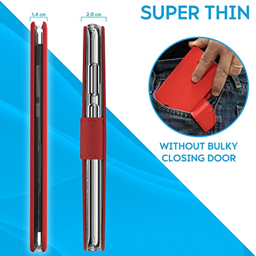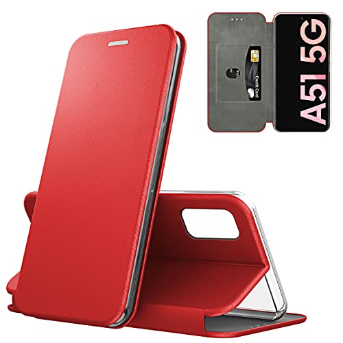 N NEWTOP Cover Compatibile per Samsung Galaxy A51 5G, Chiusura Magnetica 360 Capsule Flip Custodia Libro per Carta di Credito Simil Pelle TPU Interno Funzione Stand Supporto (Rosso)