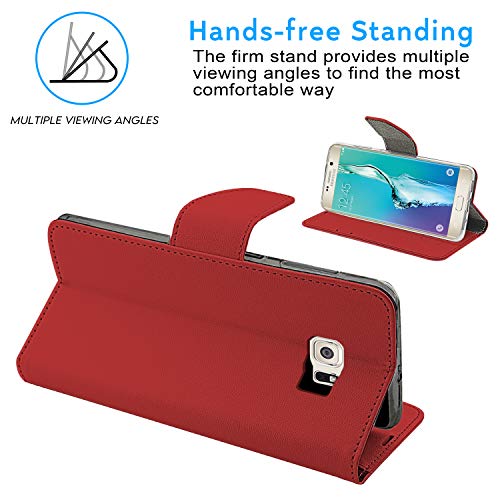 N NEWTOP Cover Compatibile per Samsung Galaxy S6 Edge Plus, HQ Lateral Custodia Libro Flip Chiusura Magnetica Portafoglio Simil Pelle Stand (Rossa)