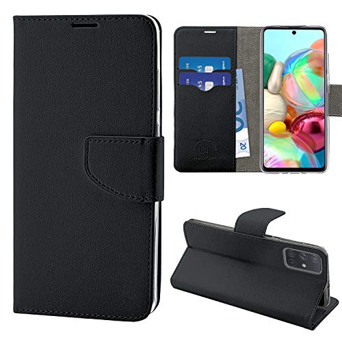 NewTop Cover Compatibile per Samsung Galaxy A71, HQ Lateral Custodia Libro Flip Magnetica Portafoglio Simil Pelle Stand (Nera)