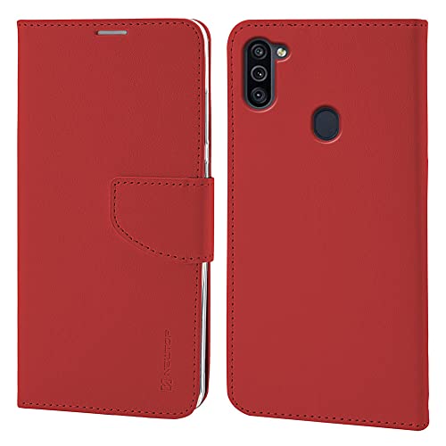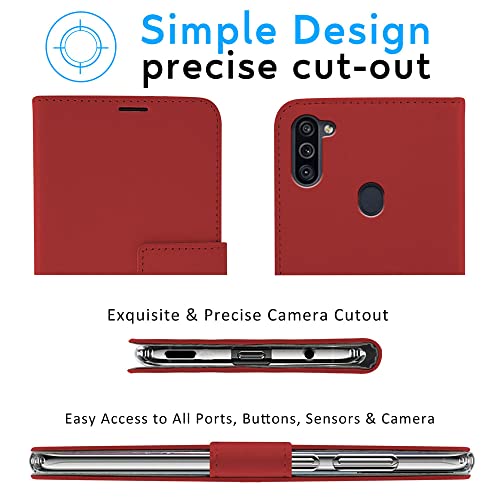N NEWTOP Cover Compatibile per Samsung Galaxy M11 M115, HQ Lateral Custodia Case Flip Magnetica Portafoglio Simil Pelle Stand (Rosso)