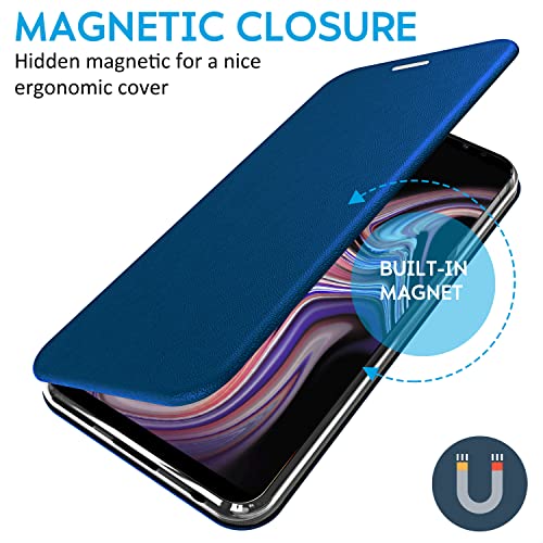 N NEWTOP Cover Compatibile per Samsung Galaxy Note 9, Chiusura Magnetica 360 Capsule Flip Custodia Libro per Carta di Credito Simil Pelle TPU Interno Funzione Stand Supporto (Blu Elettrico)