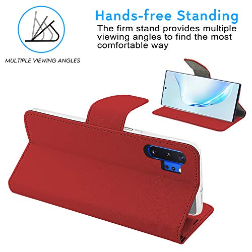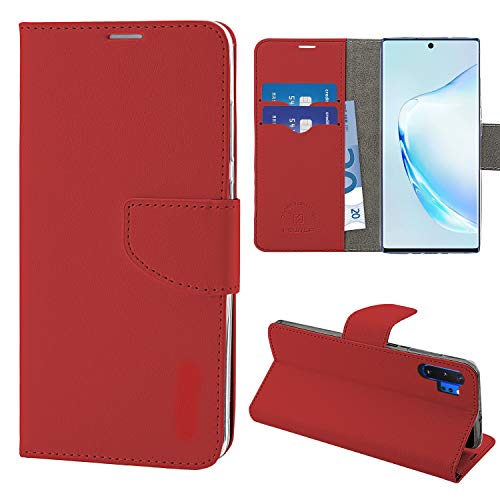 NewTop Cover Compatibile per Samsung Galaxy Note 10 Plus N975F, HQ Lateral Custodia Libro Flip Magnetica Portafoglio Simil Pelle Stand (Rosso)