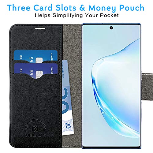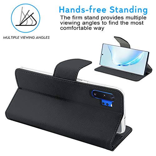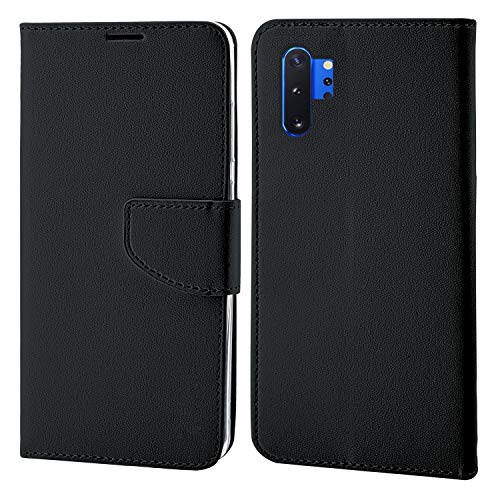 NewTop Cover Compatibile per Samsung Galaxy Note 10 Plus N975F, HQ Lateral Custodia Libro Flip Magnetica Portafoglio Simil Pelle Stand (Nero)