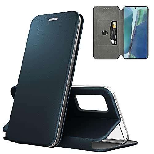 N NEWTOP Cover Compatibile per Samsung Galaxy Note 20, Chiusura Magnetica 360 Capsule Flip Custodia Libro per Carta di Credito Simil Pelle TPU Interno Funzione Stand Supporto (Blu)
