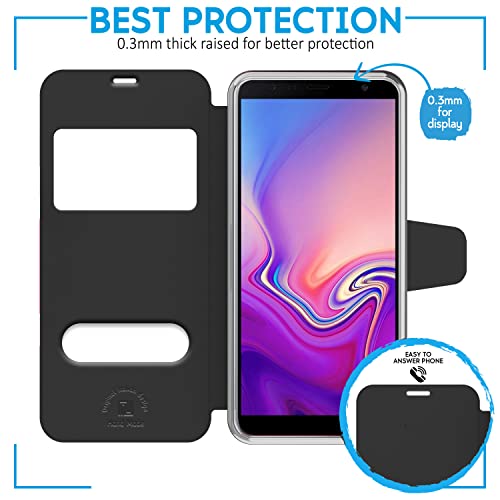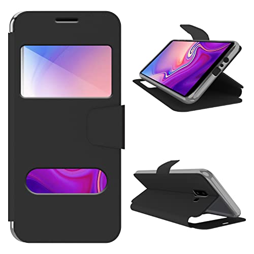 N NEWTOP Cover Compatibile per Samsung Galaxy J6 Plus, HQ Windows Notifiche Display Risposta Finestra Custodia Libro Flip Magnetica Simil Pelle Stand Protettiva (Nero)