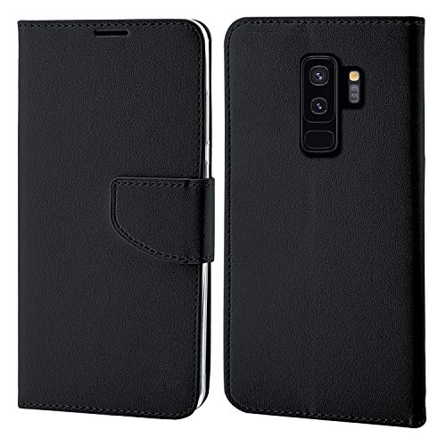 N NEWTOP Cover Compatibile per Samsung Galaxy S9 Plus, HQ Lateral Custodia Libro Flip Chiusura Magnetica Portafoglio Simil Pelle Stand (Nera)