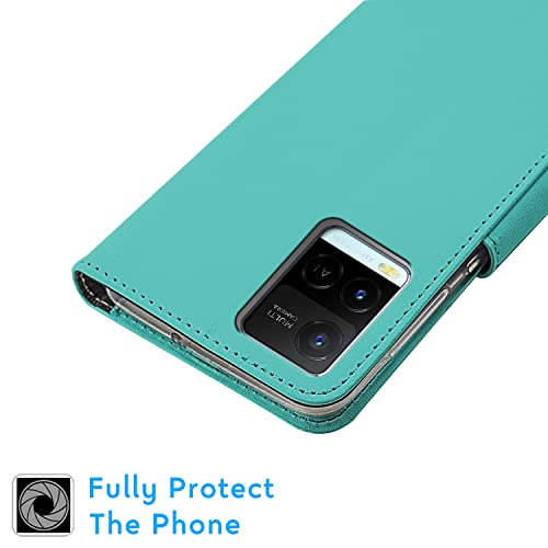 N NEWTOP Cover Compatibile per Vivo Y33s / Y21, HQ Lateral Custodia Libro Flip Magnetica Portafoglio Simil Pelle Stand Protettiva (Acquamarine)