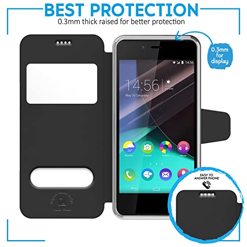 N NEWTOP Cover Compatibile per Wiko Highway Pure, HQ Windows Notifiche Display Risposta Finestra Custodia Libro Flip Magnetica Simil Pelle Stand Protettiva (Nero)