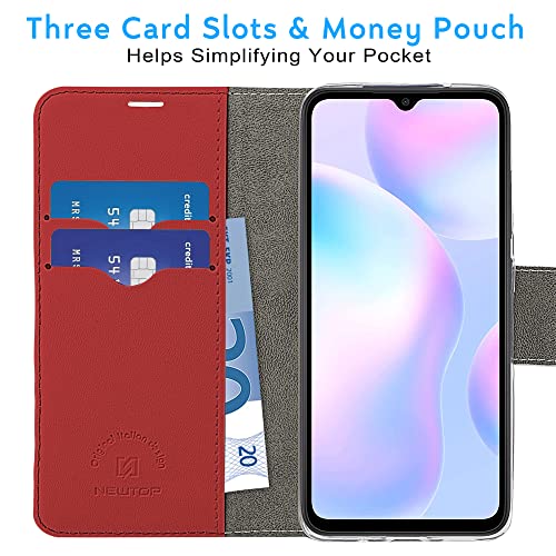 N NEWTOP Cover Compatibile per Xiaomi Redmi 9A / 9AT, HQ Lateral Custodia Libro Flip Chiusura Magnetica Portafoglio Simil Pelle Stand (Rosso)