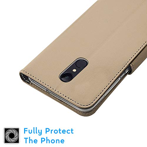 N NEWTOP Cover Compatibile per Xiaomi Redmi 5, HQ Lateral Custodia Libro Flip Chiusura Magnetica Portafoglio Simil Pelle Stand (Oro)