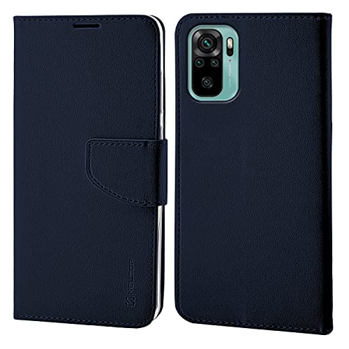 N NEWTOP Cover Compatibile per Xiaomi Redmi Note 10 4G / 10S, HQ Lateral Custodia Libro Flip Chiusura Magnetica Portafoglio Simil Pelle Stand (Blu)