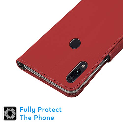 NewTop Cover Compatibile per Xiaomi Redmi Note 7/PRO, HQ Lateral Custodia Libro Flip Magnetica Portafoglio Simil Pelle Stand (Rosso)