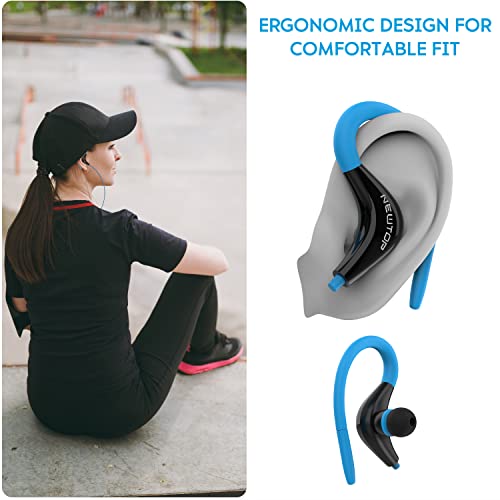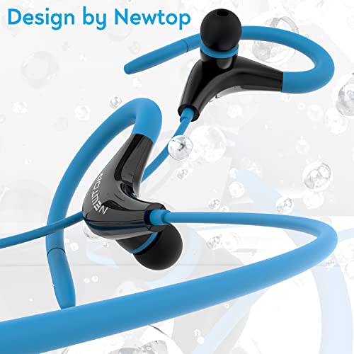 N NEWTOP Cuffie Sport Auricolari CF22 Universali Jack 3.5mm Fitness Corsa Bassi Musica Audio Stereo Microfono Tasto Risposta Isolamento Rumori Archetto Orecchio per IOS Android Cellulari (Azzurro)