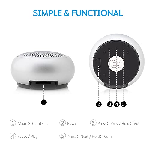 N NEWTOP Mini Cassa SP03 Bluetooth Speaker Wireless Altoparlante 7 cm Super Bassi Potenti Subwoofer Lettore Musica Micro-SD Portatile per Casa Auto Spiaggia Montagna Viaggio (Argento)