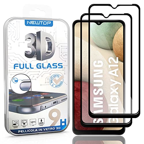 N NEWTOP Pellicola 3D FULL Compatibile con Samsung Galaxy A12, GLASS FILM 0.4mm 9H Vetro Temperato Protezione Completa Full Screen Totale Bordi Schermo Display Anti Urto (Nera, 2)