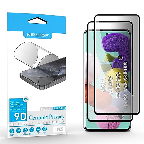 N NEWTOP Pellicola Privacy CERAMIC Compatibile con Samsung Galaxy A51 4G 5G - A52 4G 5G, Lucida FULL GLUE 0.24mm 9D Vetro Protezione Schermo Temperato Anti Urto Cornice Nera Completa Pezzi (2)