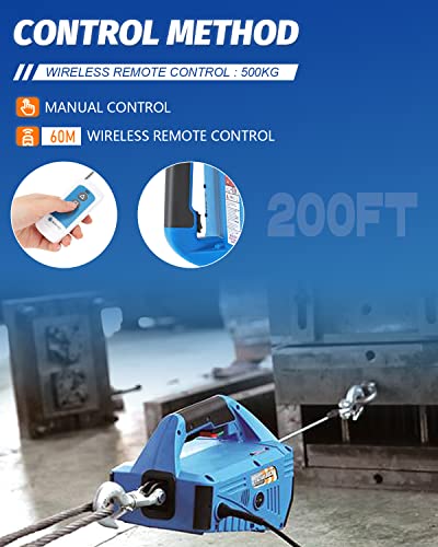 NEWTRY Paranco Elettrico 500 kg con Telecomando Senza Fili 1500W Gru di Sollevamento Elettrico 7,6m Verricello Elettrico Gru di Sollevamento Con istruzioni in italiano (EU Plug)