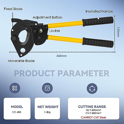 NEWTRY Tagliacavi a cricchetto CC-400 per fili di rame e alluminio da 400 mm2, NON per acciaio