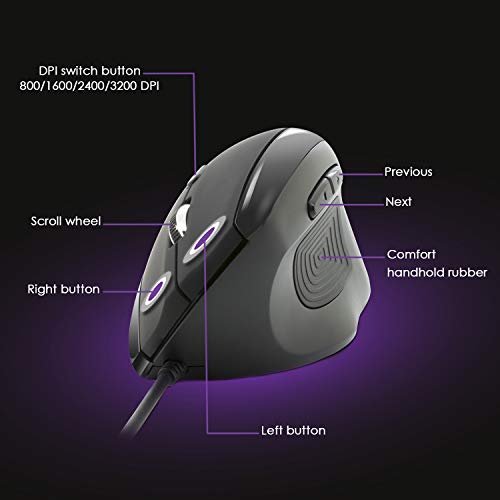 NEWWAY - Mouse Verticale Cablato Ergonomico A3-3200 DPI - Peso regolabile - USB