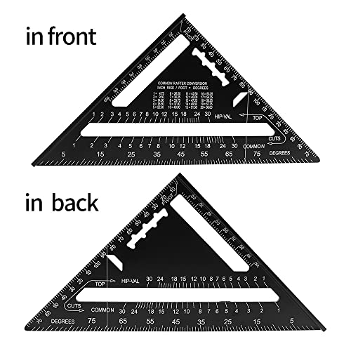 [Funzione] La nostra scala metrica triangolare ha le caratteristiche dell'angolo del telaio, del triangolo, dell'angolo di smusso e dell'angolo del goniometro e può essere utilizzata anche per la tracciatura e la guida della lama della sega. Con scala goniometro 0-90°.