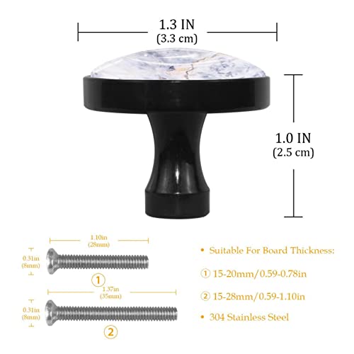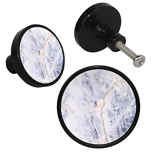 NEWzone Confezione da 4 pomelli per armadietti in marmo grigio chiaro con struttura in pietra di vetro pomelli per cassetti neri comò cassetti maniglie per cassetti, armadietti da cucina, mobili