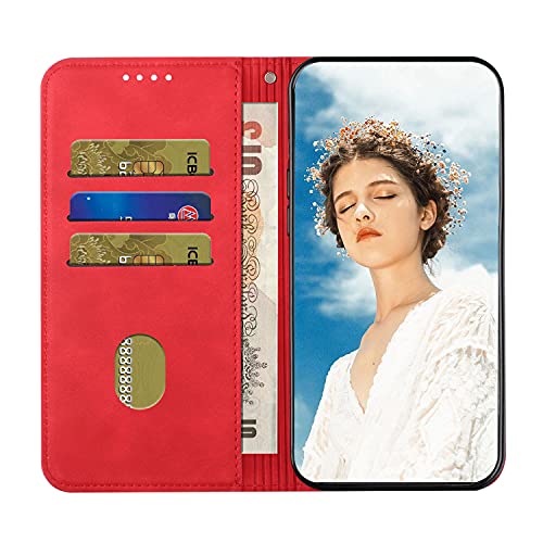 NEXCURIO Custodia a Libro Cover Portafoglio per Apple iPhone 14 Pro Max Book Flip Case in Pelle con Tasca Porta Carte Supporto Antiurto - Rosso