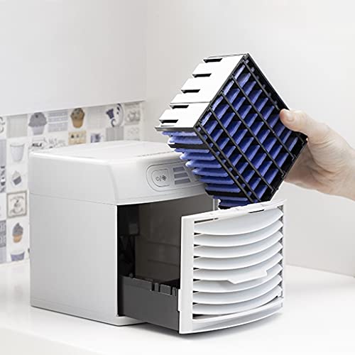 [ECO-FRIENDLY & COST EFFECTIVE] Non ha bisogno di composti chimici, converte l'acqua fredda quotidiana, attraverso un filtro speciale, per avere aria fresca e pulita. Può funzionare fino a 8 ore per riempimento. Inoltre, quando si utilizza 10W di potenza di lavoro tramite USB, consuma davvero poca energia.