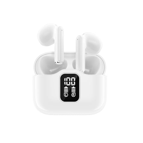 ND NEXT DESTINATION Cuffie Senza Fili con LED Auricolari Bluetooth 5.3 con Stereo HiFi Immersivo 30 Ore Cuffie Wireless Incorporato 4 HD Mic Cuffiette Bluetooth IPX7 Impermeabili - Bianco brillante