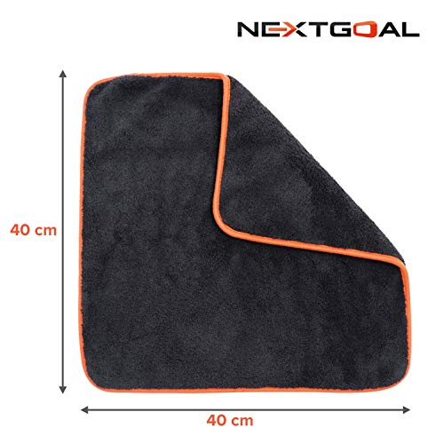 NEXTGOAL Panno Microfibra Auto 1200gsm, Altissimo Grado di Assorbimento, Asciugatura, Lavaggio, Lucidatura della Carrozzeria Auto e Moto, Pulizia vetri, Cattura Polvere (3X Panni (40x40CM))