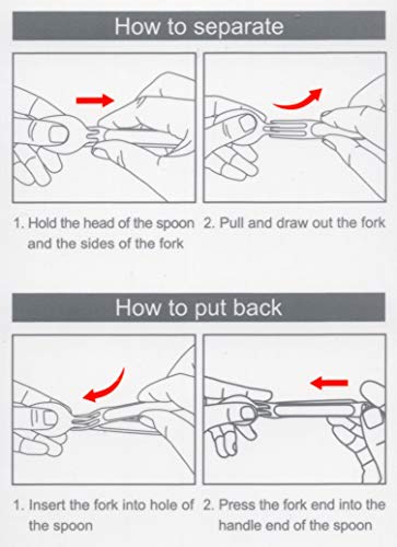 Design intelligente con forchetta e cucchiaio integrato, inserto e fibbia per riporlo, pizzicare e tirare per l'uso, risparmiare spazio e allo stesso tempo fornire un uso indipendente. Comodo ed ecologico. I due possono essere combinati in uno per una facile conservazione.