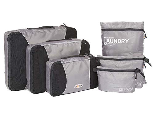 unico imballaggio organizzatori soluzione al vostro viaggio - -6 pc Travel organizzatori imballaggio include: 1PC Large Packing Cube (46 x 35 x 8,5 cm) & 1pc Medium imballaggio Cube (38 x 26,9 x 8 cm) & 1pc Small Packing Cube (30 x 19 x 8 cm) & 1pc Digital accessori custodia (22 x 15 x 3 cm) & 1pc borsa da toilette (27 x 19 x 3 cm) & 1pc Laundry Bag (42 x 30 x 5 cm)