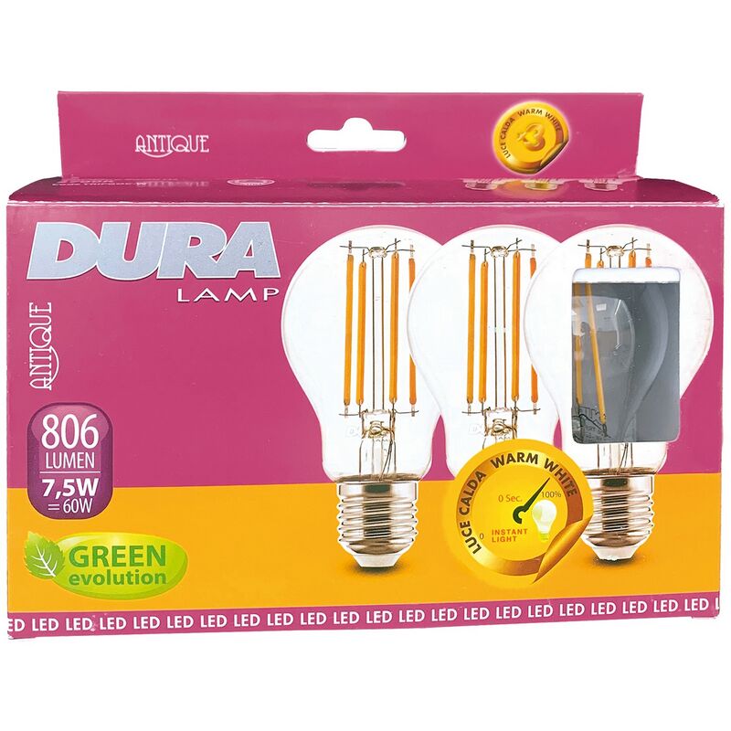Tecnologia led. a filamento. confezione blister da 3 pezzi. mod. goccia attacco e27 potenza 9 w luce fredda 6000k 806 lumen