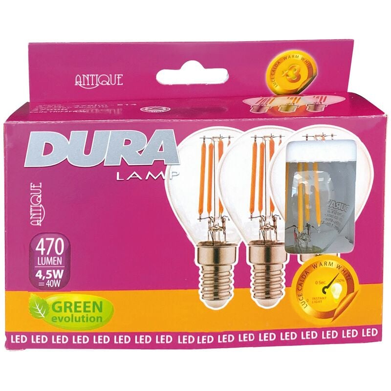 Tecnologia led. a filamento. confezione blister da 3 pezzi. mod. sfera attacco e14 potenza 4 w luce calda 2700k 470 lumen