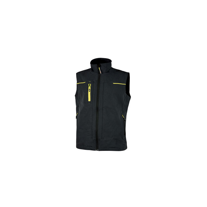 Gilet in tessuto u-4 (u-power 4 way stretch) molto comodo, resistente, morbido sulla pelle, idrorepellente, traspirante e asciuga rapidamente. dotata di 2 tasche frontali e una tasca porta cellulare sul petto chiuse con zip, 2 ampie tasche interne. fondo