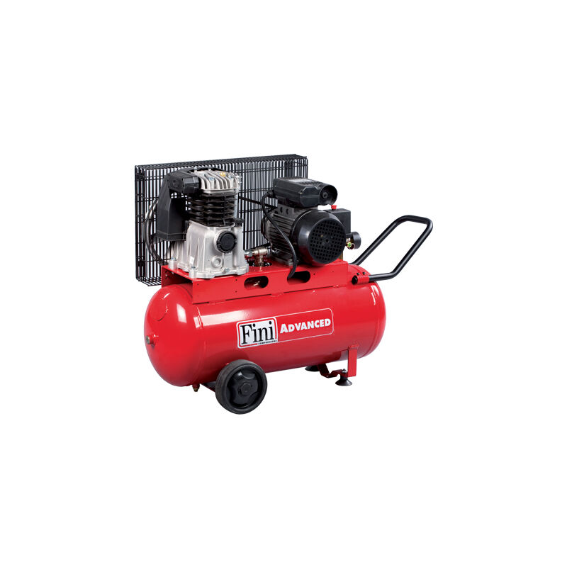 Compressore bicilindrico motore monofase hp 2 - kw 1,5 con aspirazione 235 lt/min., pressione max. 10 bar, traino cinghia lubrificato, con motore da 1,5 kw, serbatoio 50 lt. su ruote di grande dimensione e doppio piede per una maggiore stabilitã durante