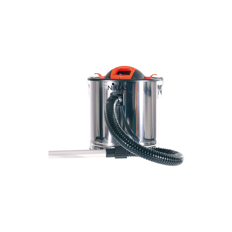Aspiracenere con motore aspirante 1000 watt con ventola raffreddamento, fusto acciaio inox, capacitã lt. 18, filtro epa, tubo flessibile acciaio rivestito in pvc, beccuccio aspirazione in alluminio, manico per il trasporto, ideale anche per rimozione di