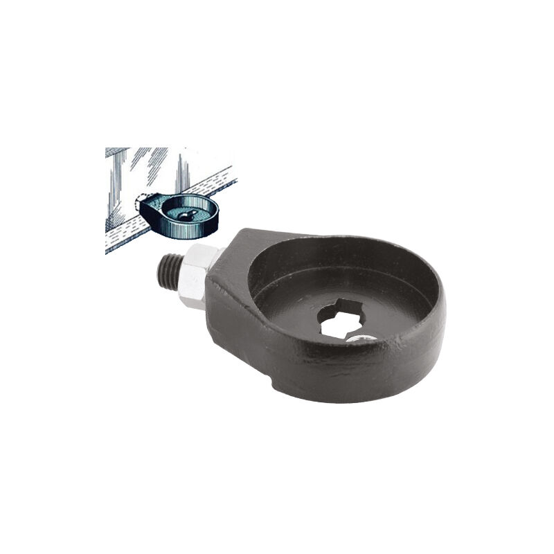 In acciaio stampato con rondella e dado 16 mm. e boccola temperata da fissare sull'elemento base della serranda