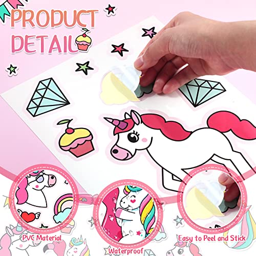 Adesivi a tema unicorno sufficienti: il pacchetto viene fornito con 4 fogli di adesivi con unicorno per bicicletta, disponibili in vari elementi, come arcobaleno, stella, torta, caramelle, stamina e altro, dall'aspetto sognante e adorabile