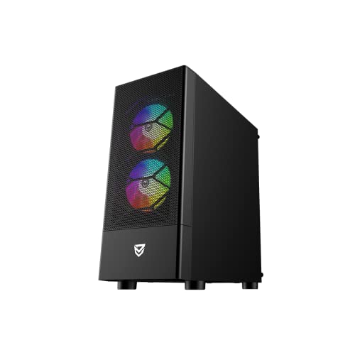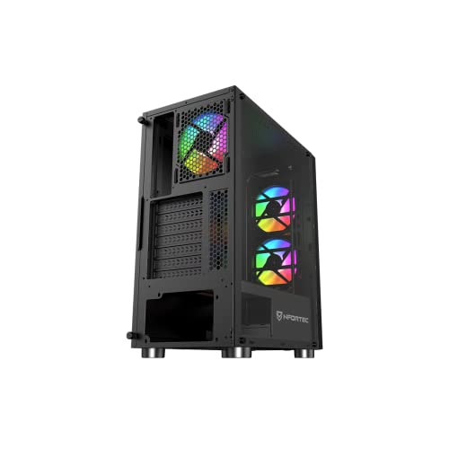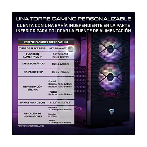 Nfortec - CAELUM Case per PC da gioco Mid Tower (ATX), 3x ventole ARGB da 120 mm incluse, rete frontale, vetro temperato laterale, nero