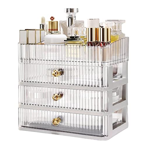 NGUMMS Porta Trucchi e organizzatori - Porta Profumi con 3 Cassetti - Organizer Trasparente per controsoffitti per controsoffitti Bagno e Camera da Letto, portaoggetti da scrivania per Rossetto